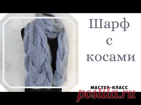Объемный шарф с косами из мохера. Схема узора. Подробный мастер- класс.
