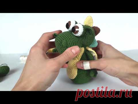 Динозавр крючком. Вязаные игрушки.Вязание для начинающих.Crochet dino.(Урок5 Глазки,пришиваем ножки)
