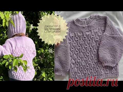 Джемпер с малинками спицами на любой размер #_pautinka_knit #свитерспицами #джемперспицами #узор
