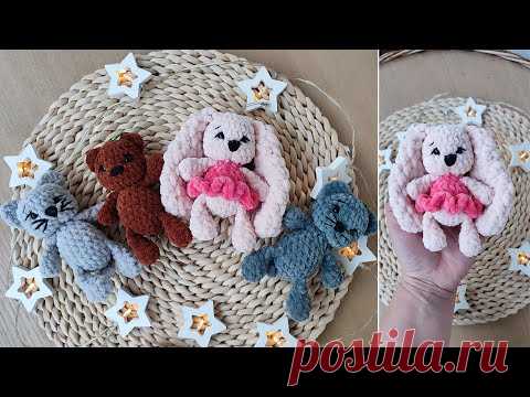 МК Маленькие игрушки амигуруми вязаные крючком, Зайка брелок с длинными ушами крючком ( часть 1).