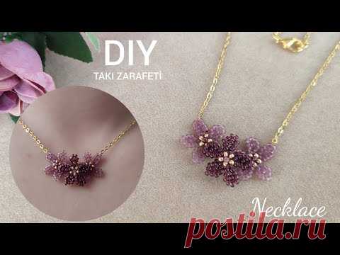 Minik mor çiçekli kolye yapımı.Tiny purple Flower Necklace Making.[DIY] Beads of the Month Tutorials