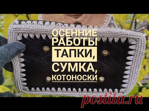 Мое осеннее вязание/ Кожаная сумка/ Кожаные тапки/Кошачьи носки