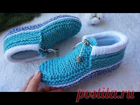 💥СТИЛЬНЫЕ БЕСШОВНЫЕ следки - мокасины на двух спицах. Подробный МК.