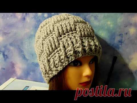 Зимняя, тёплая шапка крючком. Подробное видео для начинающих.