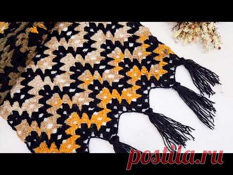гармония батика и черного цвета | Как связать сезонный шарф зигзагом крючком.