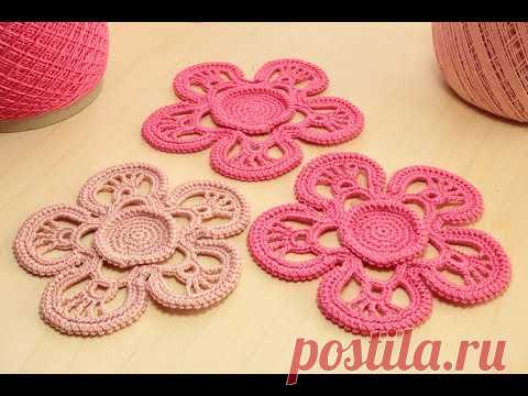 Вязание ЦВЕТКА с обвязкой шнуром гусеничка - ЧАСТЬ 1 How to crochet a flower