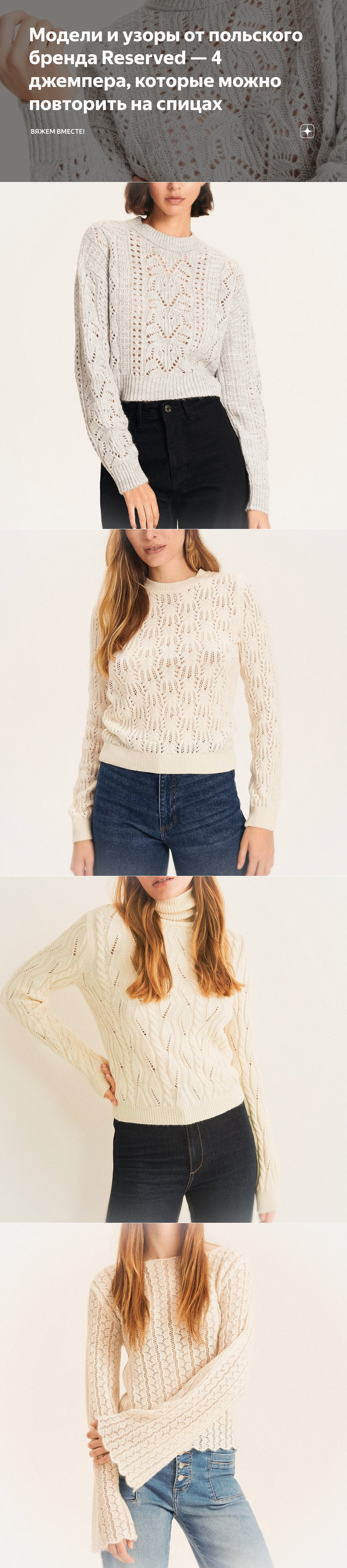 Модели и узоры от польского бренда Reserved — 4 джемпера, которые можно повторить на спицах | Вяжем вместе! | Дзен