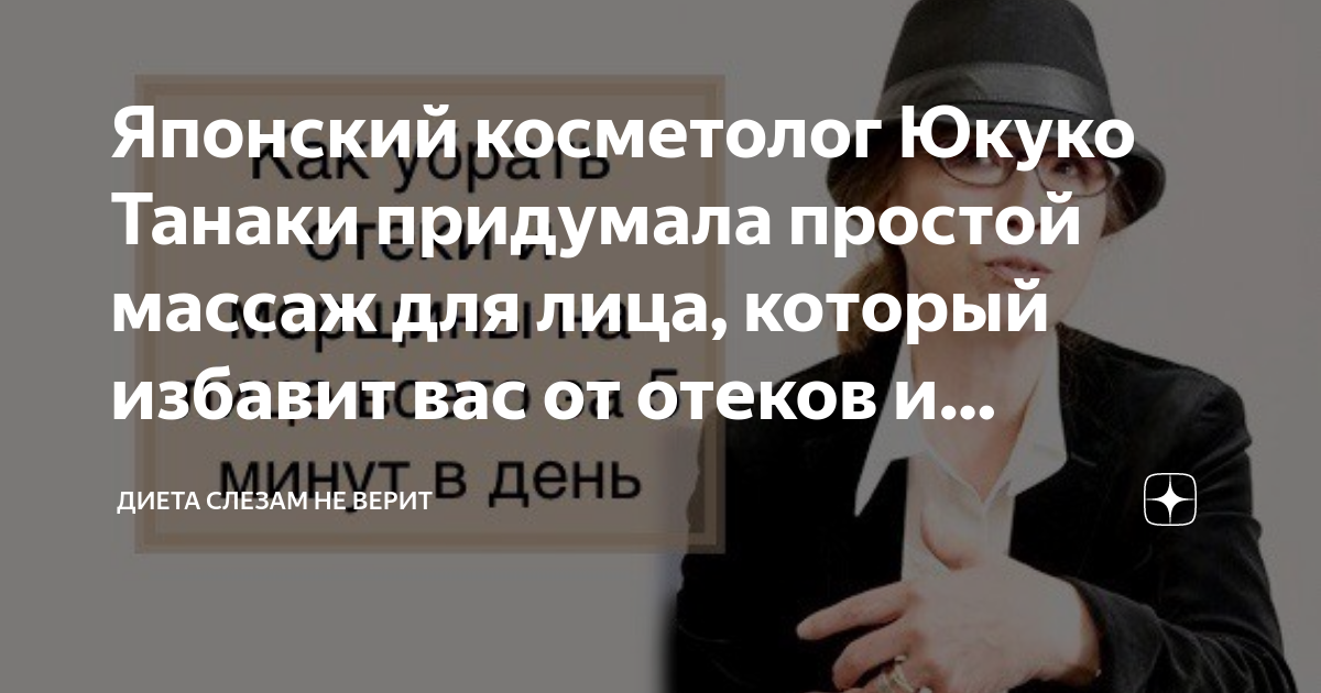 Японский косметолог Юкуко Танаки придумала простой массаж для лица, который избавит вас от отеков и морщин всего за 5 минут в день Статья автора «Диета слезам не верит» в Дзене ✍: Многие японки часто выглядят на 20 лет моложе своего возраста - их секрет заключается в массаже лица, который устраняет отечность и омолаживает кожу.