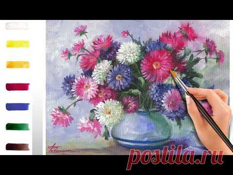 Астры. Как нарисовать цветы 🎨АКРИЛ! ‎ДЕМО