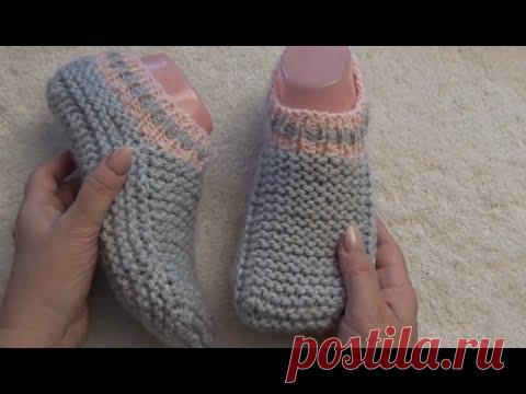 Как связать тапочки простой вязкой . Wie man mit einfachem Stricken Hausschuhe strickt