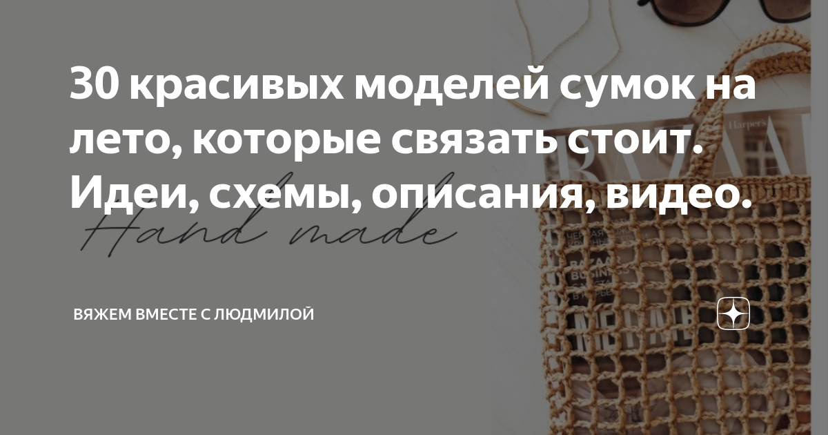 30 красивых моделей сумок на лето, которые связать стоит. Идеи, схемы, описания, видео. Статья автора «Вяжем вместе с Людмилой» в Дзене ✍: Я подготовила подборку незаезженных вязаных сумок на лето, которые оставят свой след в этом сезоне.
