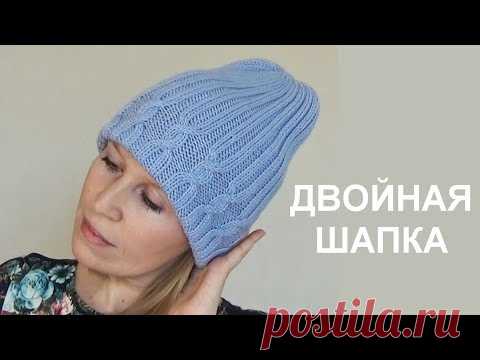 Двойная шапка бини. Вязание спицами. Knitting Beanie Hat. Tutorial