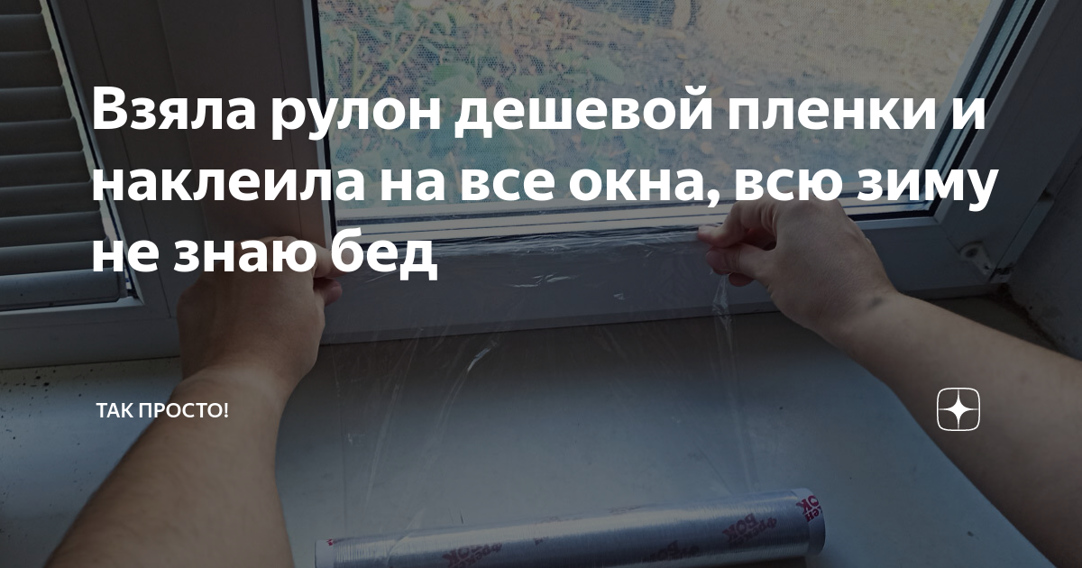 Взяла рулон дешевой пленки и наклеила на все окна, всю зиму не знаю бед Статья автора «Так Просто!» в Дзене ✍: Как же хочется, чтобы дома всегда было тепло и уютно. Особенно когда начинается поздняя осень. И тепло вернется только в середине мая.