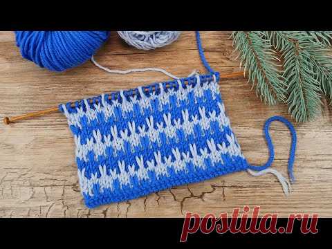 Зимний жаккардовый узор ❄ «Еловые ветки» спицами 🌲