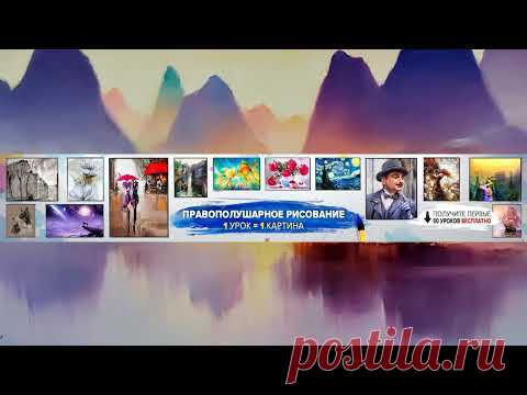 Зимий пейзаж с Луной. Получите 50 уроков в описании ролика.