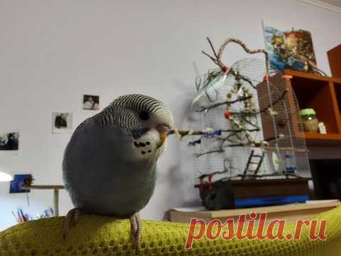 Хвилястий папуга Тоша тиждень дома. Приручення, Їжа, пророщена пшениця.