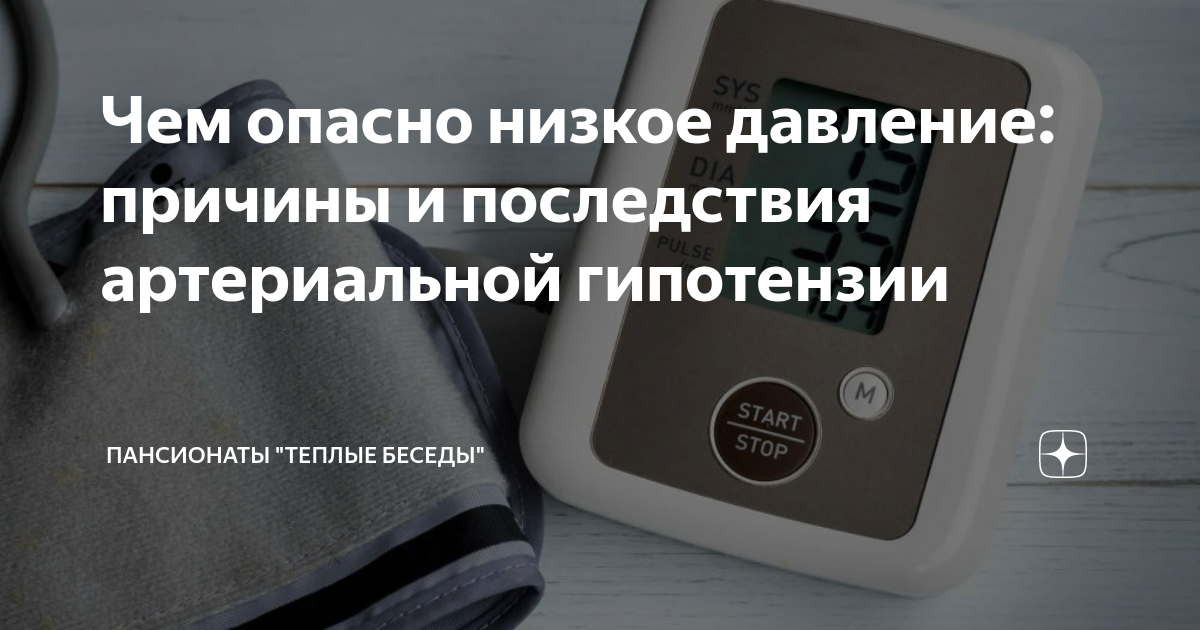 Чем опасно низкое давление: причины и последствия артериальной гипотензии Статья автора «Пансионаты "Теплые Беседы"» в Дзене ✍: Пожилые люди привыкли бояться повышенного артериального давления.
