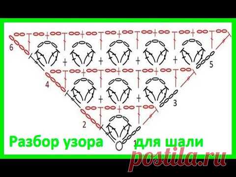 Разбор УЗОРА для ШАЛИ по схеме , crochet shawl , вязание КРЮчКОМ (шаль № 418)