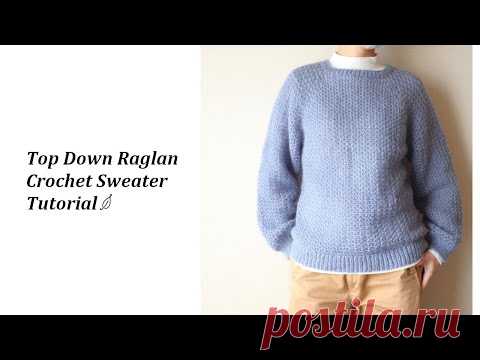 Мастер-класс по вязанию свитера реглан крючком сверху вниз / мохеровая пряжа