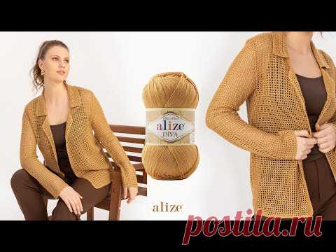 Вязаный крючком кардиган в сеточку с Ализе Дивой