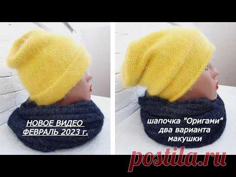 МК Шапочка с макушкой "Оригами" с отворотом по голове, без отворота как шапка чулок. пряжа Пух норки