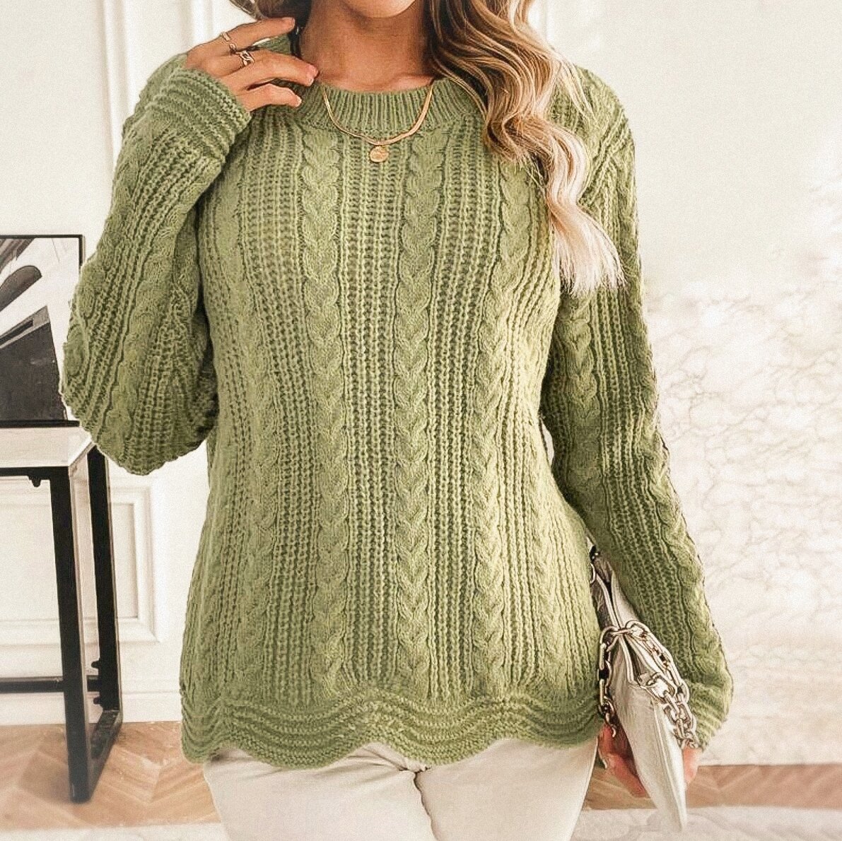 Фисташковый джемпер с косами (схема узора)