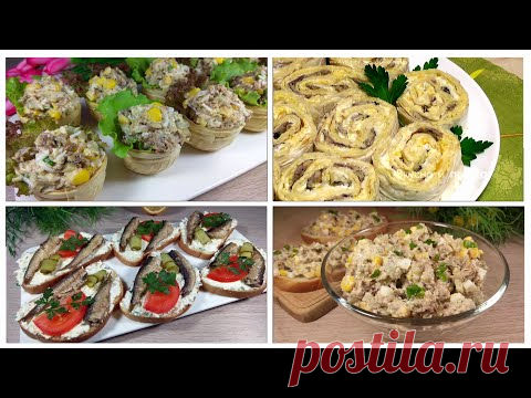 4 Лёгких Рецепта со Шпротами 👌 На Новый Год 🎄 / Салат, Закуски, Бутерброды ✔👌✨