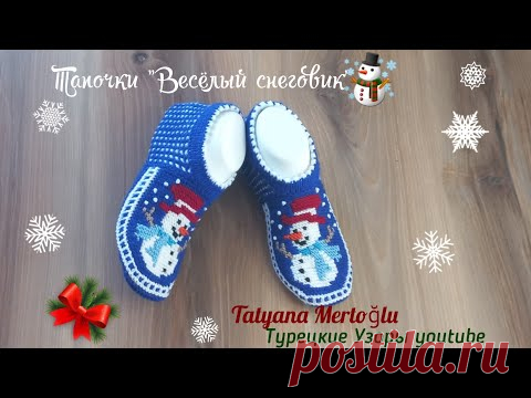 Тапочки спицами 💙"Веселый снеговик"⛄️☃️