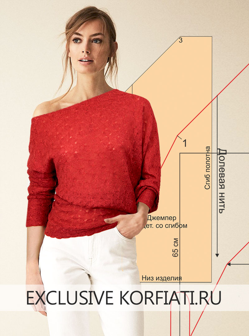 Выкройка джемпера женского от Анастасии Корфиати Выкройка джемпера асимметричного перекошенного кроя из трикотажного полотна. Яркая модель, которую можно сшить за час. Кроить можно прямо на материале!