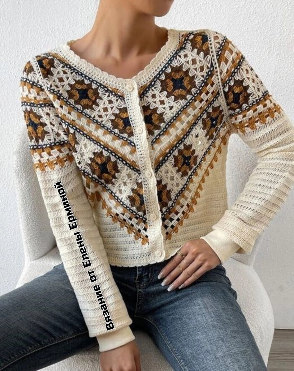🔥Большая подборка схем вязания мотивов. 👍На это стоит посмотреть: замечательная идея жакета | Вязание крючком Елена Ермина | Дзен