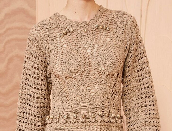 Красоту эффектной модели может подчеркнуть и пряжа. Разбор платья от бренда Ulla Johnson коллекция осень/зима 2023 | Вязание крючком с Захарченко Ольгой | Дзен