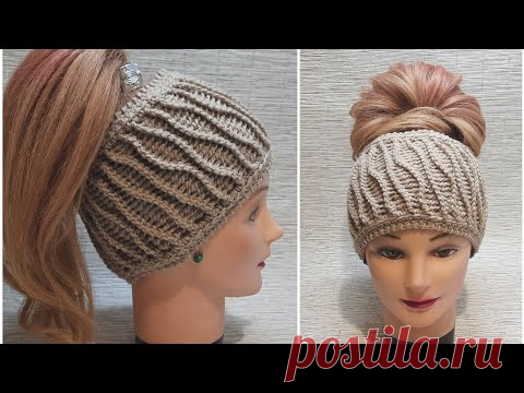 Повязка крючком тунисским вязанием.Простой оригинальный узор ❤всего 4 ряда😍