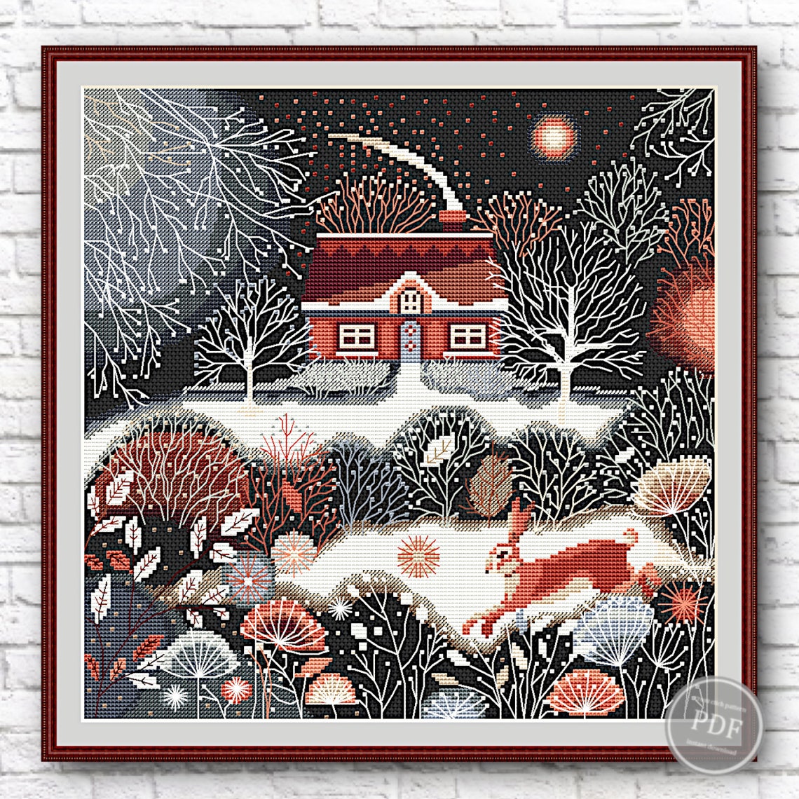 Вышивка крестом Зима Заяц в скандинавском стиле Вышивка - Etsy Украина