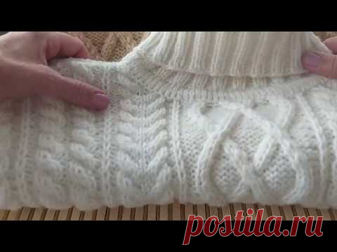 Вяжем воротник гольф к мужскому свитеру вместе. Вязание спицами.
