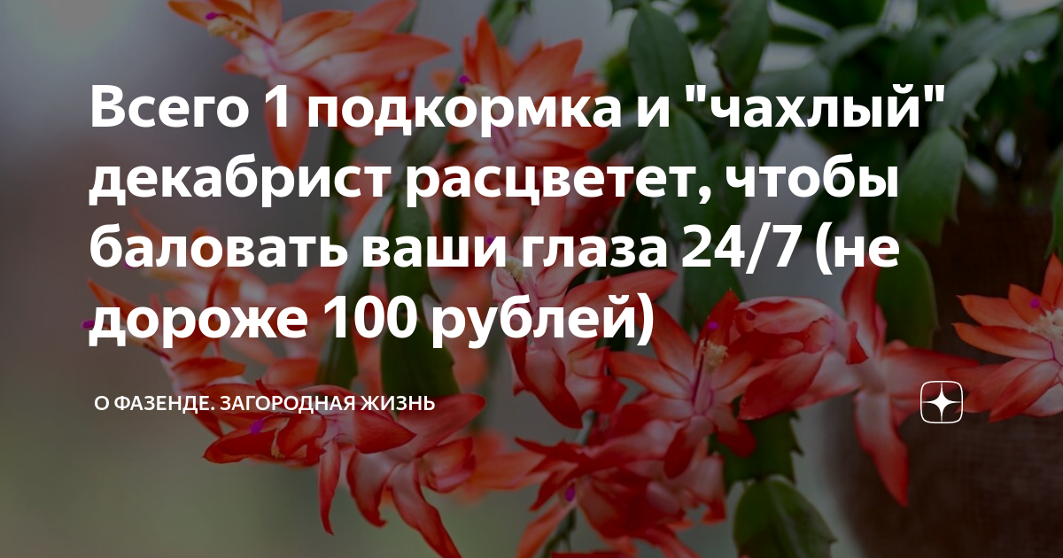 Всего 1 подкормка и "чахлый" декабрист расцветет, чтобы баловать ваши глаза 24/7 (не дороже 100 рублей) Статья автора «О Фазенде. Загородная жизнь» в Дзене ✍: Когда у меня появился первый декабрист, я каждый год с нетерпением ждал, что вот-вот он покроется бутонами и будет радовать своим цветением.