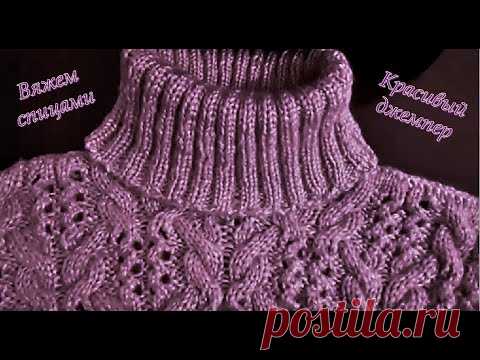 Красивый джемпер (свитер) вяжем спицами МК №7: воротник гольф, под горло. Beautiful jumper (sweater)
