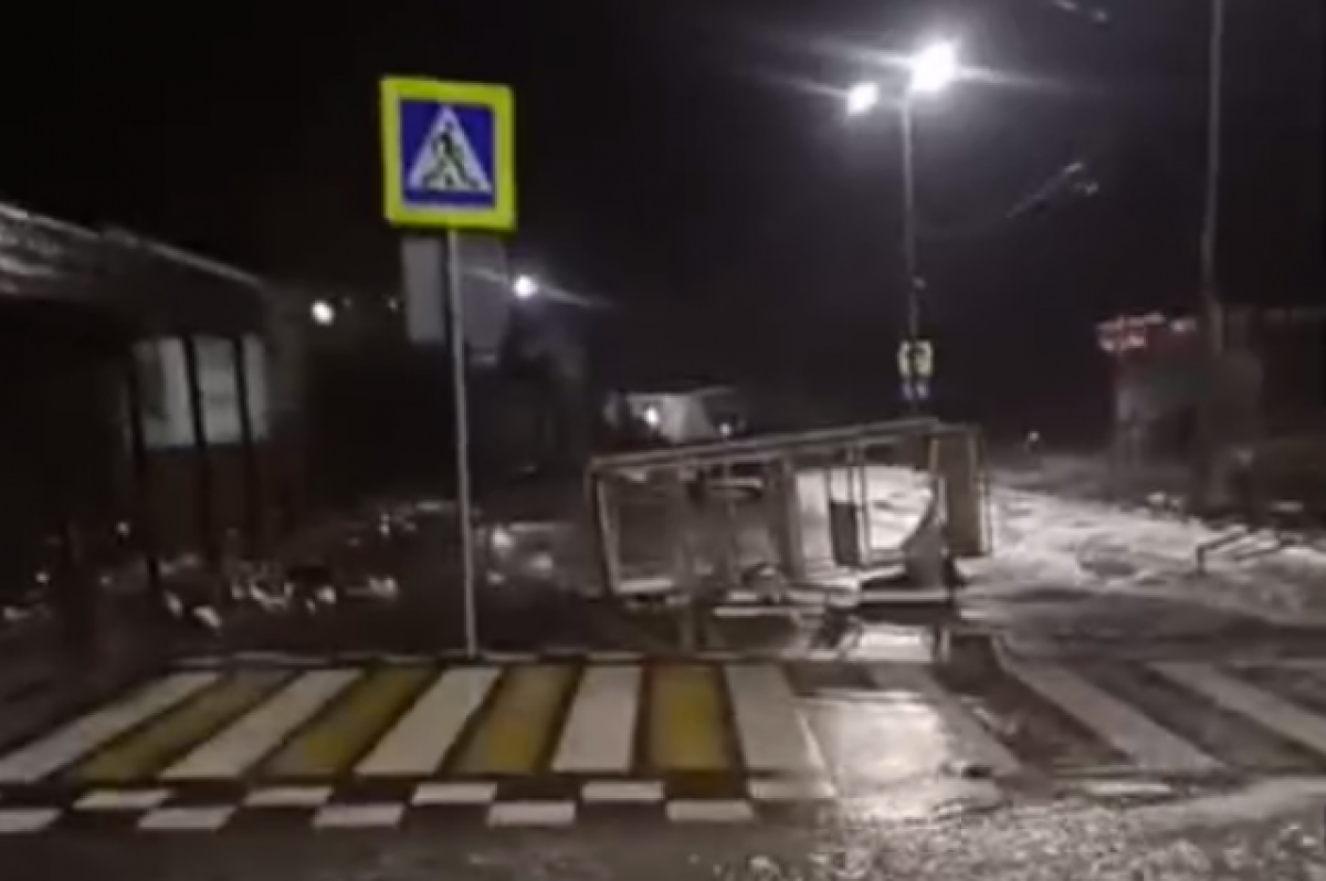 Конструкции с пляжа выбросило на проезжую часть в селе Широкая Балка. Непогода продолжает бушевать на территории юга России.