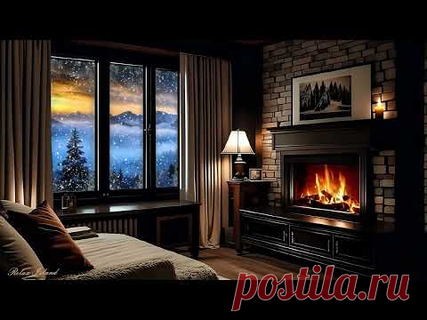 🔥 Шум метели и вьюги глядя на огонь в камине для сна 2b ❄️ Blizzard Sounds на закате в горах для сна