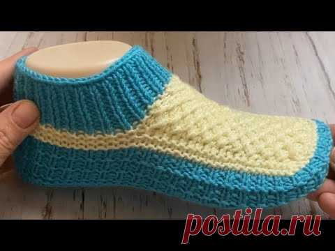 НОВИНКА 2023 !!! ТЕПЛЫЕ И КЛАССНЫЕ !!! Тапочки-следки на двух спицах без швов // patik modelleri