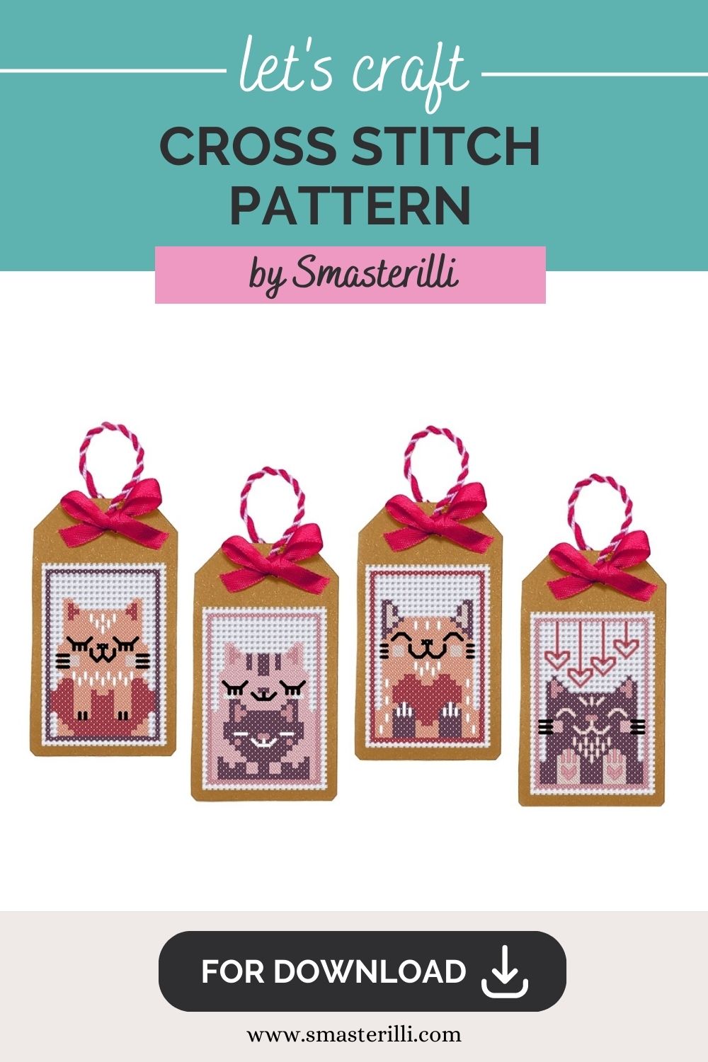 valentine's day gift tags cross stitch pattern PDF , love embroidery ornament by smasterilli. Digital cross stitch pattern for instant download. easy cross stitch for beginners. Cat Lover's Gift idea for handmade craft