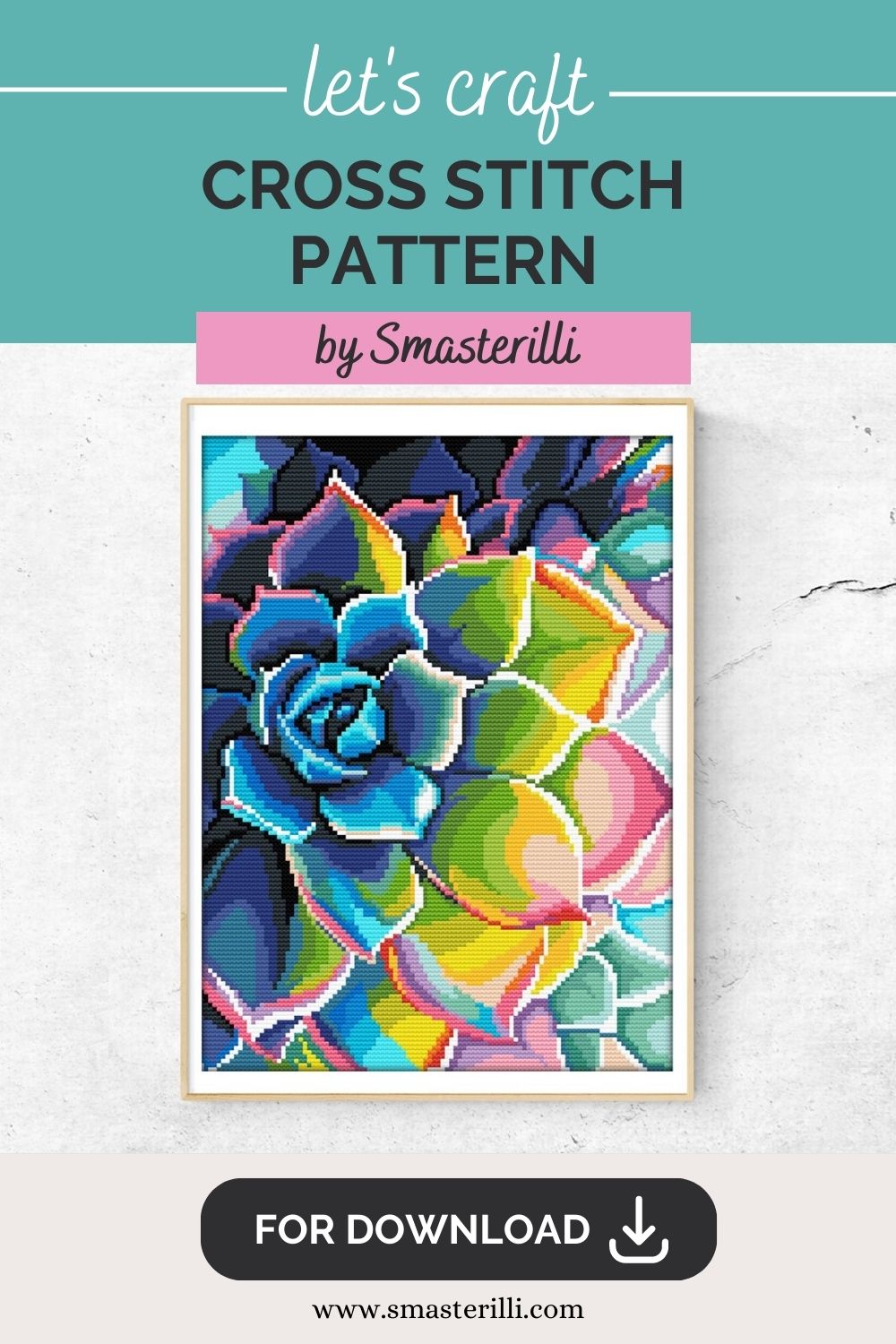 Rainbow succulent plant cross stitch pattern PDF , large embroidery design with flower by Smasterilli. Digital cross stitch pattern for instant download.