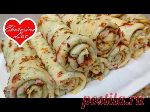 БЛИНЫ С СЫРОМ, ВЕТЧИНОЙ и УКРОПОМ! Закусочные блинчики на молоке! Сырные блины! Масленица!