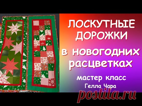 ЛОСКУТНОЕ ШИТЬЁ В НОВОГОДНИХ ЦВЕТАХ ШЬЁМ ДОРОЖКИ НА СТОЛ (салфетки коврики) мастер класс Гелла Чара