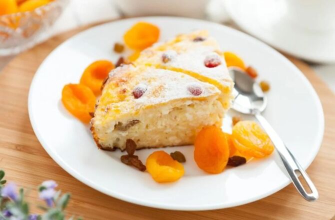 Нежная творожная запеканка с манкой и сухофруктами пошаговый фото рецепт - Retsept.net