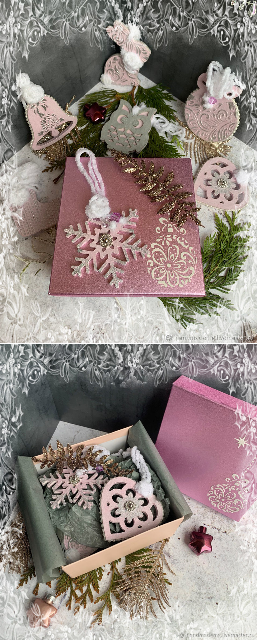 Набор ёлочных украшений Розовая дымка купить в интернет-магазине Ярмарка Мастеров по цене 2500 ₽ – U2YVCRU | Елочные игрушки, Москва - доставка по России