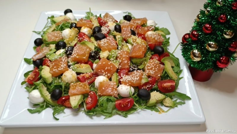 Вкуснейший салат на Новый год: Идеальное сочетание красной рыбы и авакадо! Всем привет! У меня сегодня к Вам мой любимый рецепт салата с красной рыбой и авокадо, на любой праздничный стол. И все так как Вы любите , готовится салат быстро ,легко и просто! Получается красивый и очень вкусный салат ,и улетает первый со стола. Ингредиенты 1.Руккола...