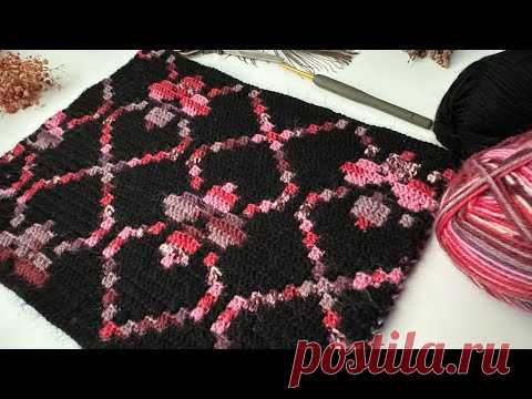 Следы любви в вязании❤️‍🔥Искусство вязания крючком Техника мозаики с сердечками и цветами