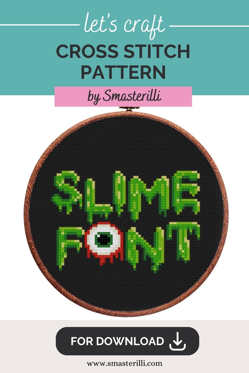 Green slime alphabet cross stitch pattern by Smasterilli.Digital cross stitch pattern for instant download. Halloween handmade crafts