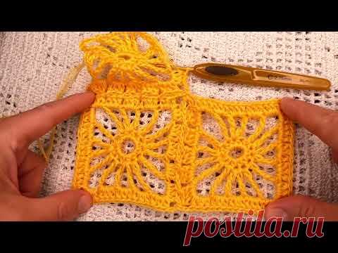 Узор для ПЛЕДА из желтых квадратов , вязание КРЮчКОМ , crochet pattern ( №179)