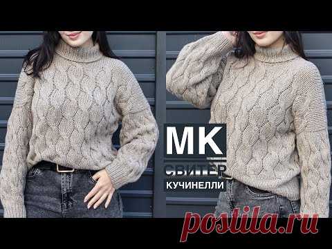 Мастер-класс свитер Кучинелли с косами! Подробный, попетельный МК спицами!